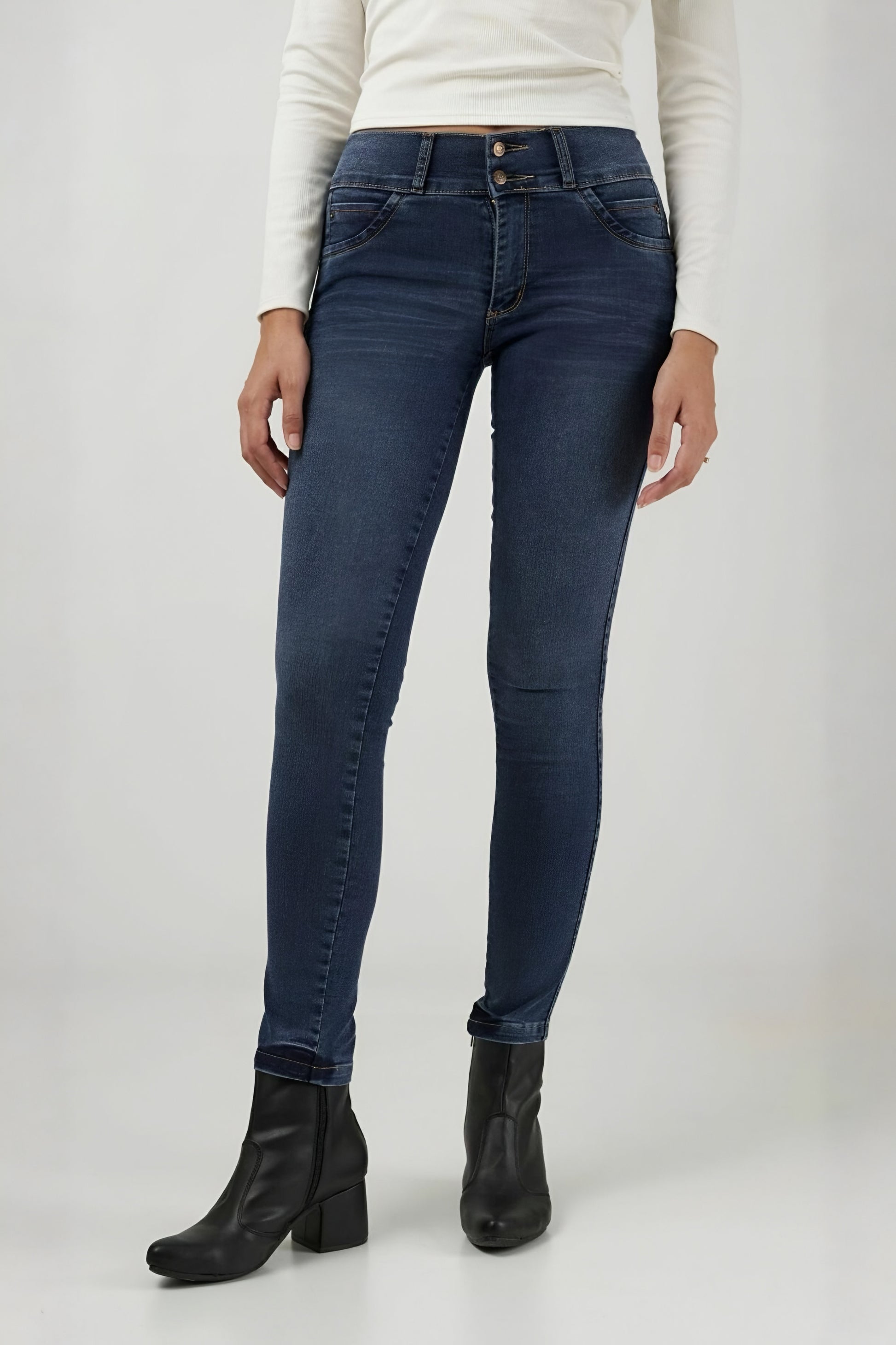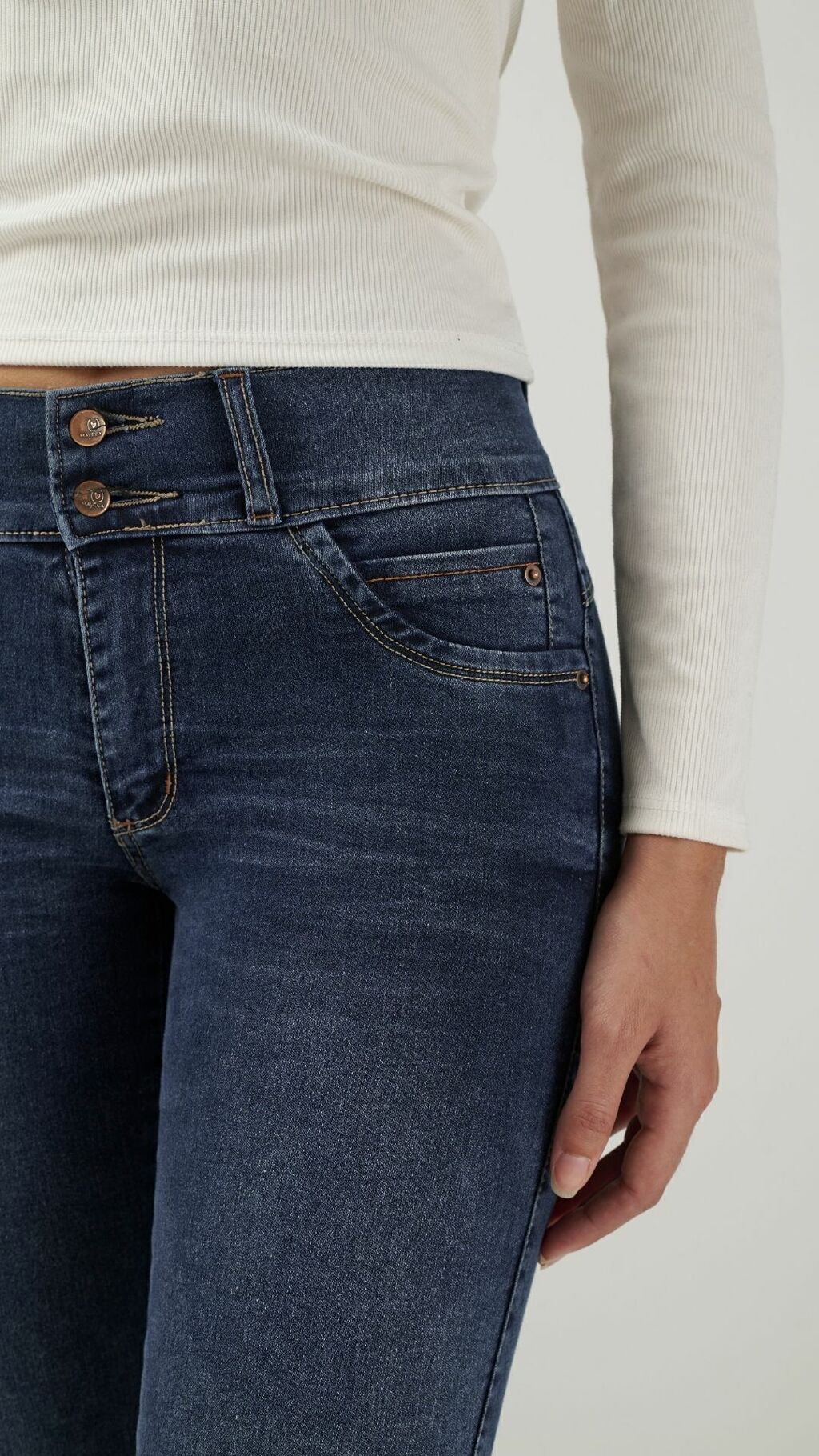 El jean chupín Raiz es comodidad y estilo en una sola prenda. Con tiro medio y dos botones, se adapta perfecto al cuerpo. Sus costuras en el relojero y el bolsillo trasero con tapa y botón le suman un toque único. Gracias a su elasticidad medio-alta, es ideal para el día a día. ¡No te quedes sin el tuyo!