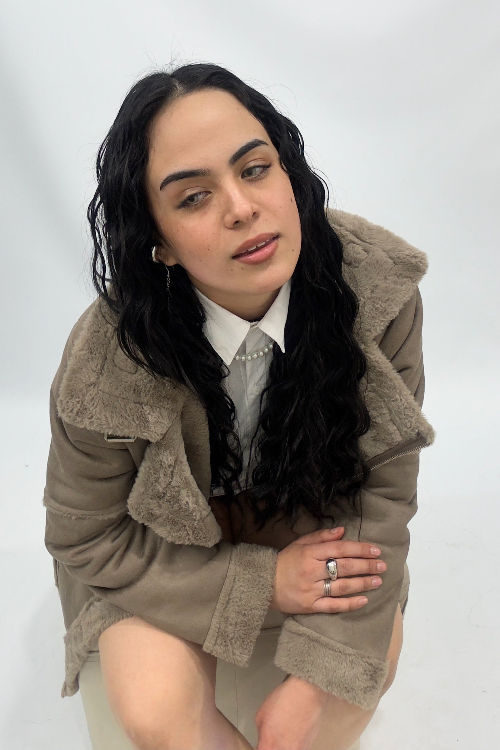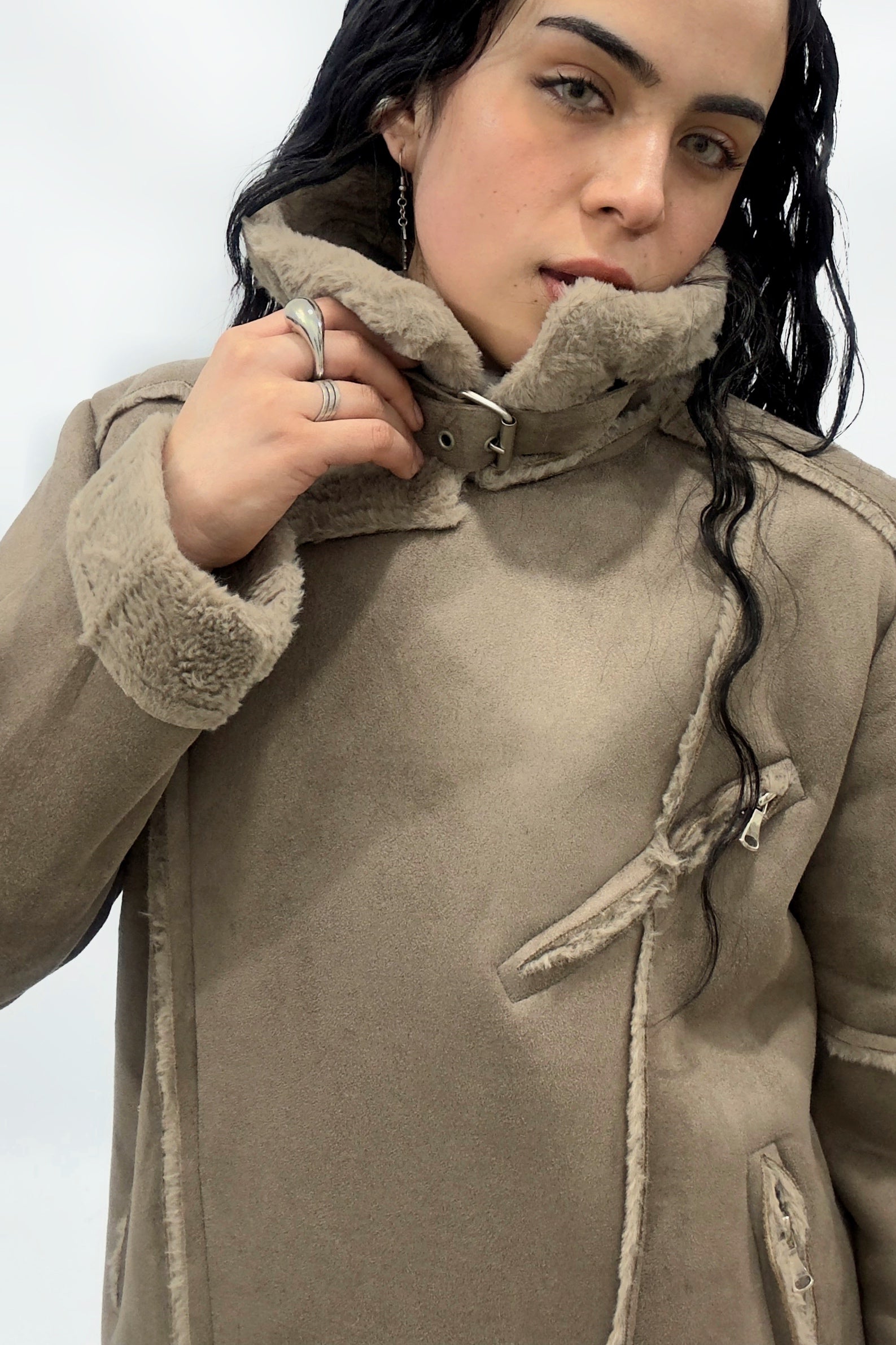 Gamulan en tono beige claro con interior de pirl, cierre lateral y cuello alto con hebilla. Diseño moderno, cálido y elegante. Ideal para días fríos con estilo. Súper abrigado. Calidad premium.