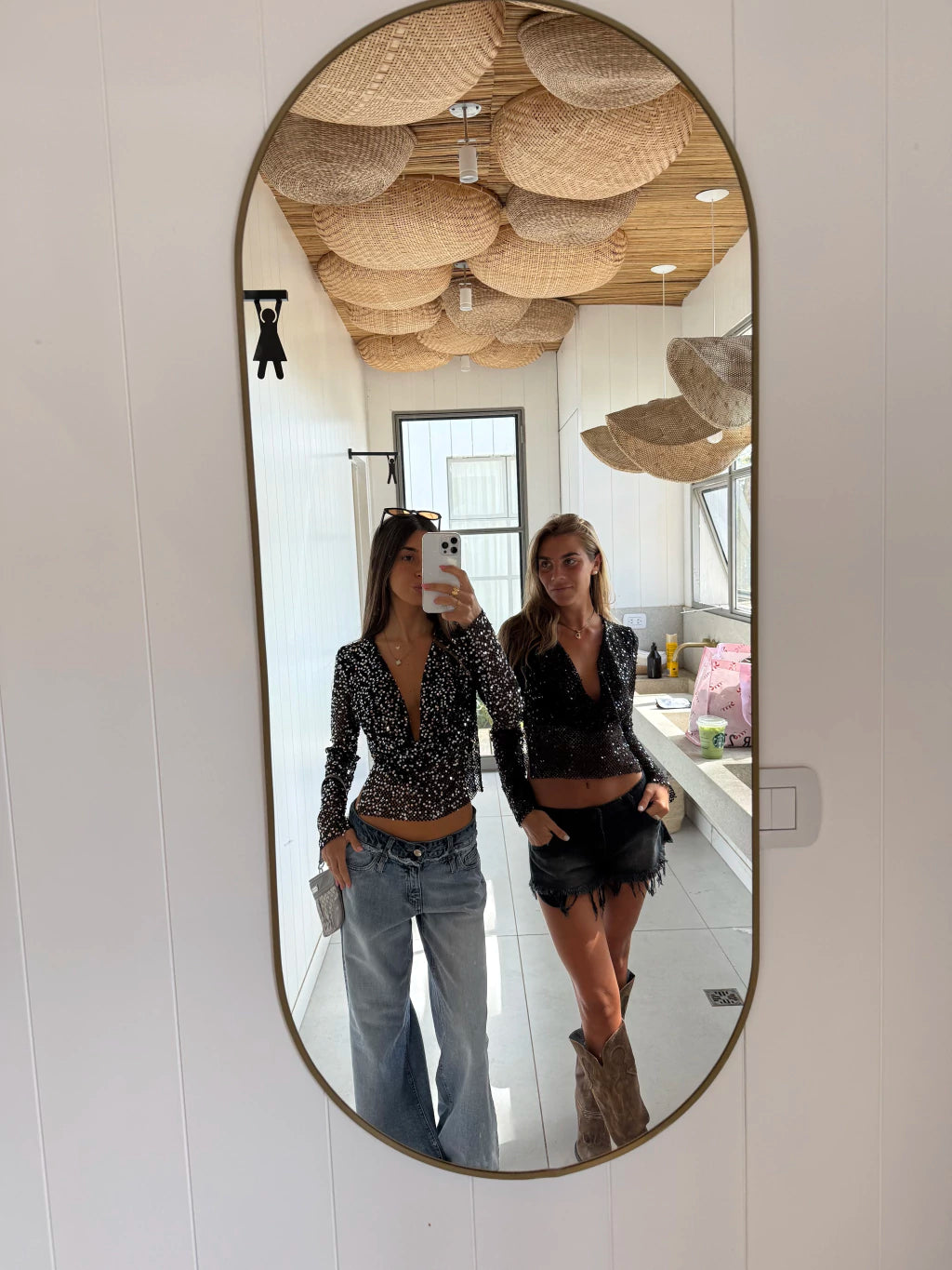 Top confeccionado en red con lentejuelas. Se puede usar de ambos lados. Semi Elastizado, no transparenta.